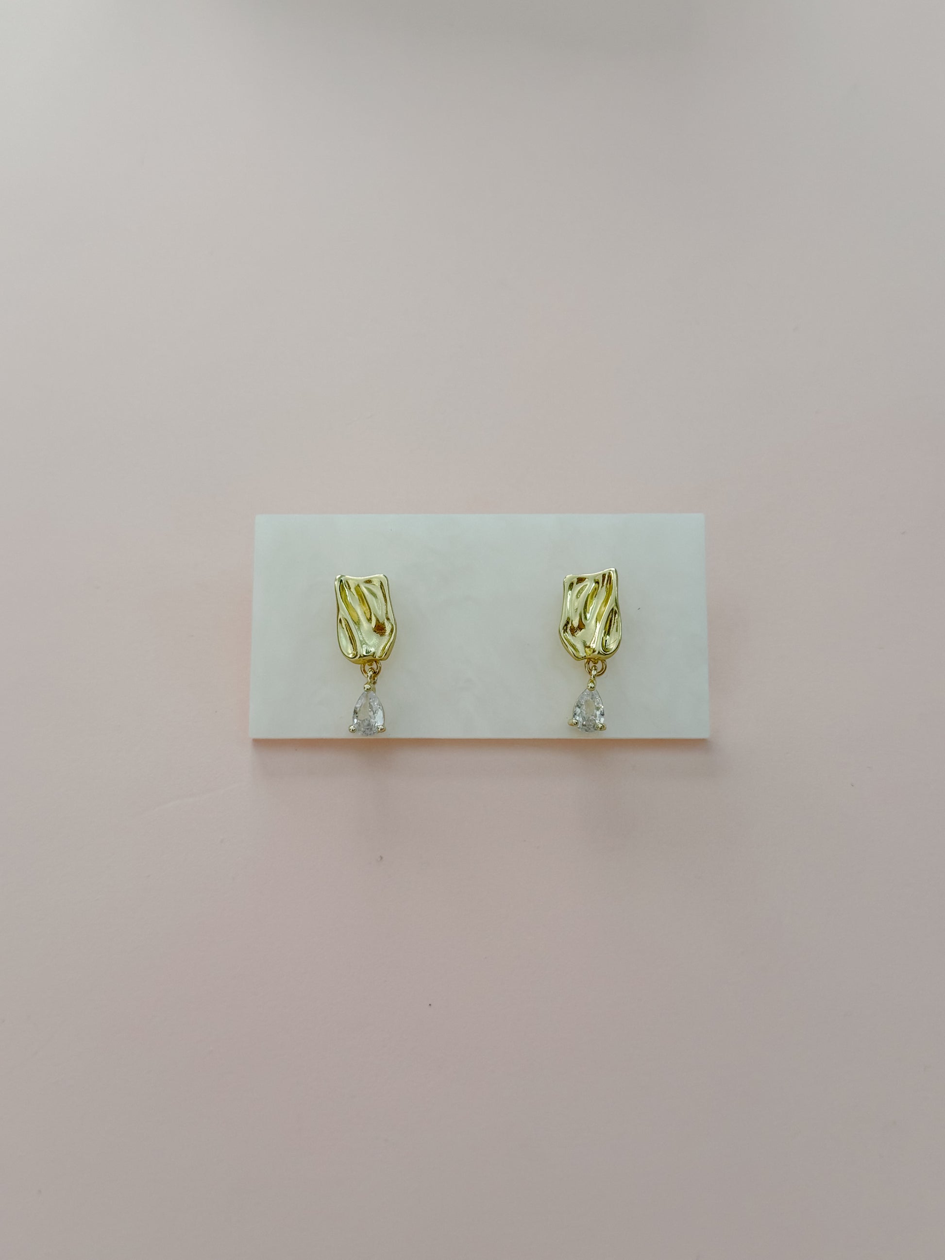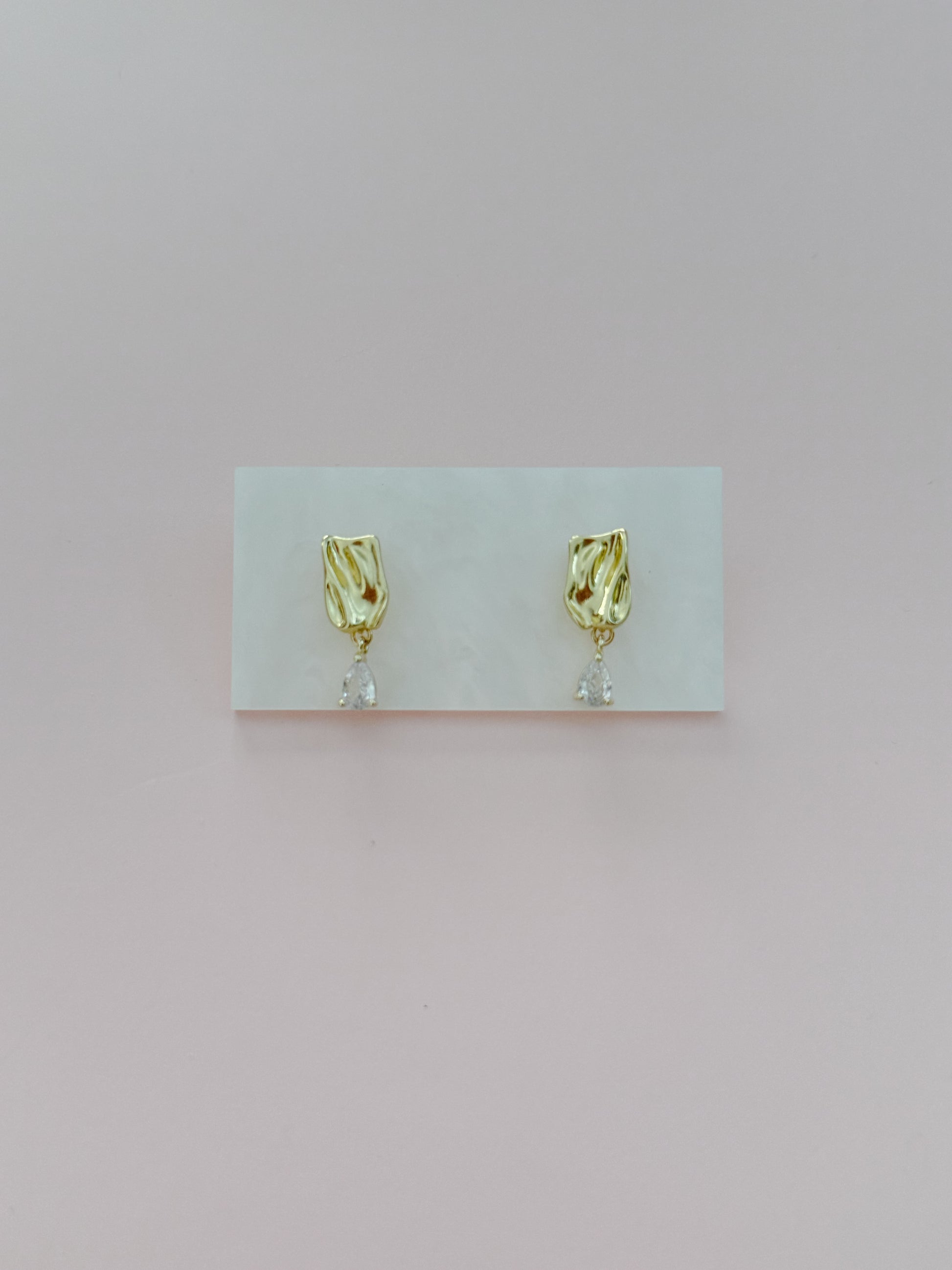 24k Gold plated post earrings with small cz rhinestones, gold part is 0.5" and rhinestones are 0.25"