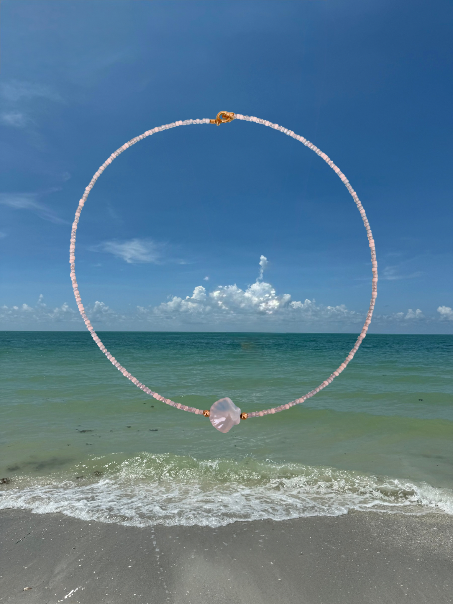 Light Blue Shell Necklace with a light blue mix seed beads and light blue shell that's around 5"!