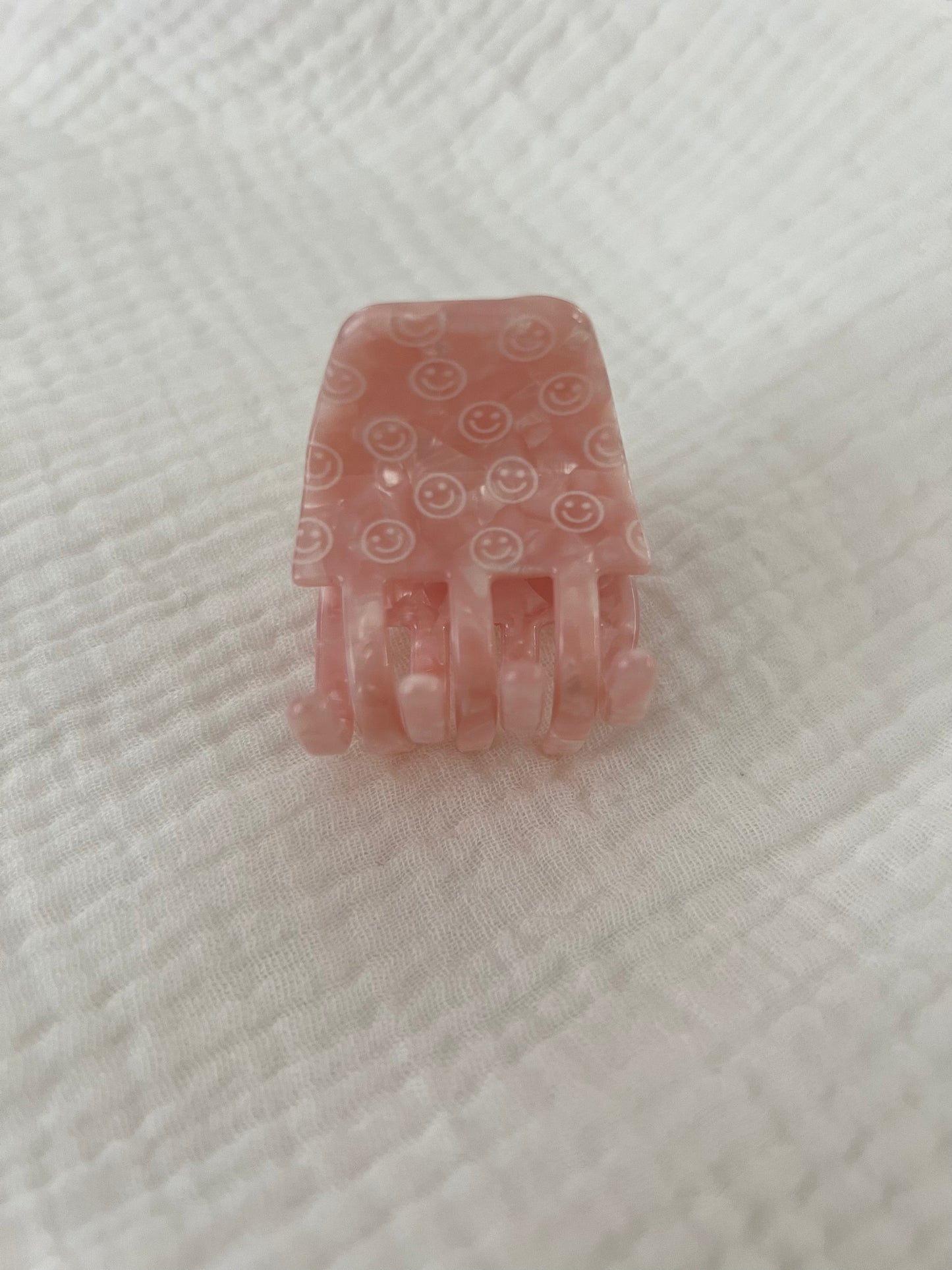 This is for 1 hair clip. Pink marble with white smiley faces, about 1/2” in size