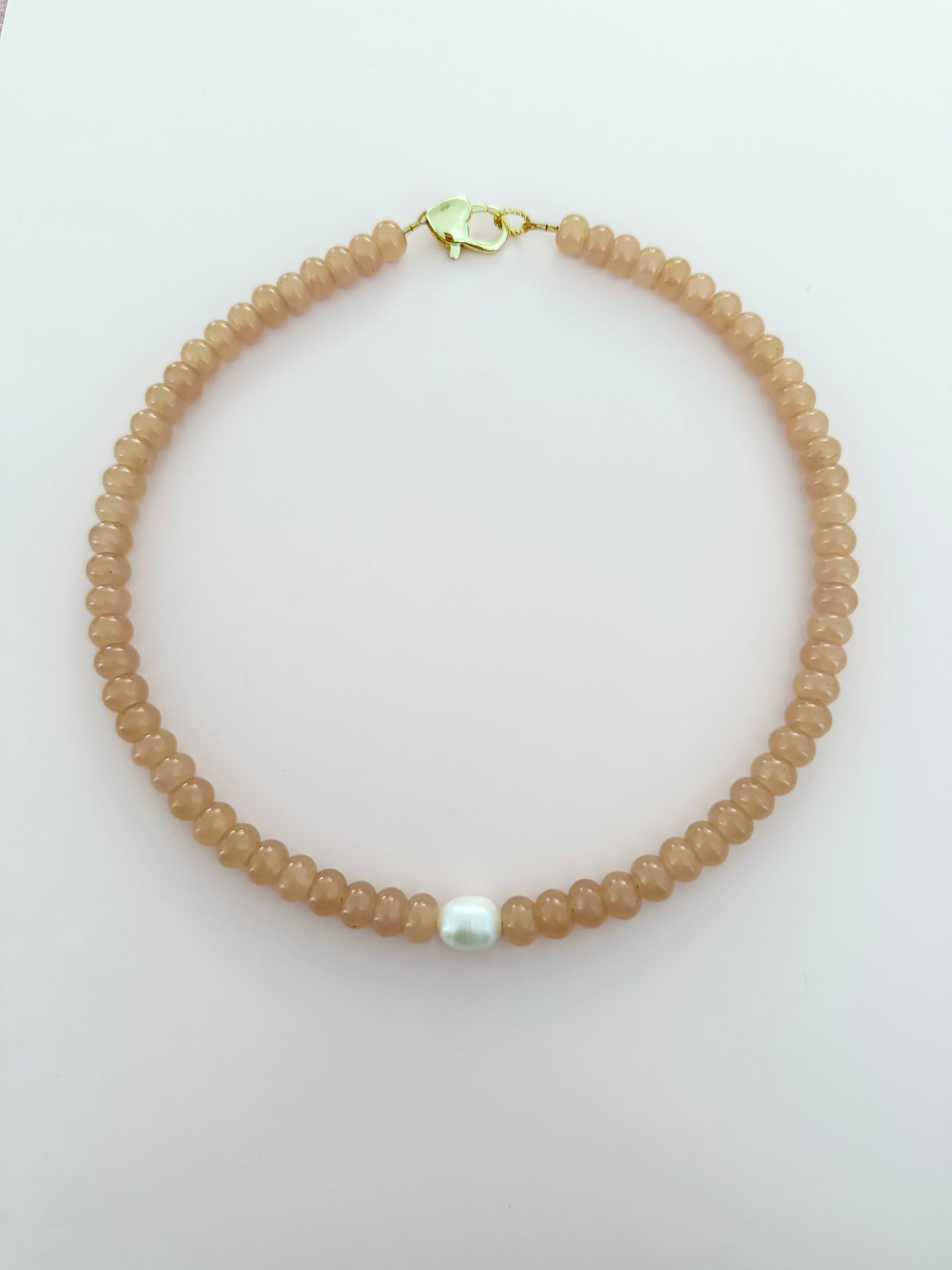 Beaded Sunstone Necklace with freshwater pearl! It is 16.75”, please select if you would like to add a 1” or 2” extender, or keep the length as is! Beads are chunkier 0.25" with some weight